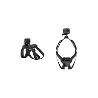 Mount your Action Camera on your dog to capture the world from his point of view. This harness features two mounting locations for a variety of perspectives: the chest, for bone-chewing, digging and front-paw action, and the back, for over-the-head shots of running, jumping, fetch and more. Made of washable, water-friendly material, your dog can swim, play and get dirty without a worry. Soft, padded construction keeps your pet comfortable. Fully adjustable to fit small, medium and large breed dogs from 7 to 54 kg. The chest mount is removable for smaller dogs.