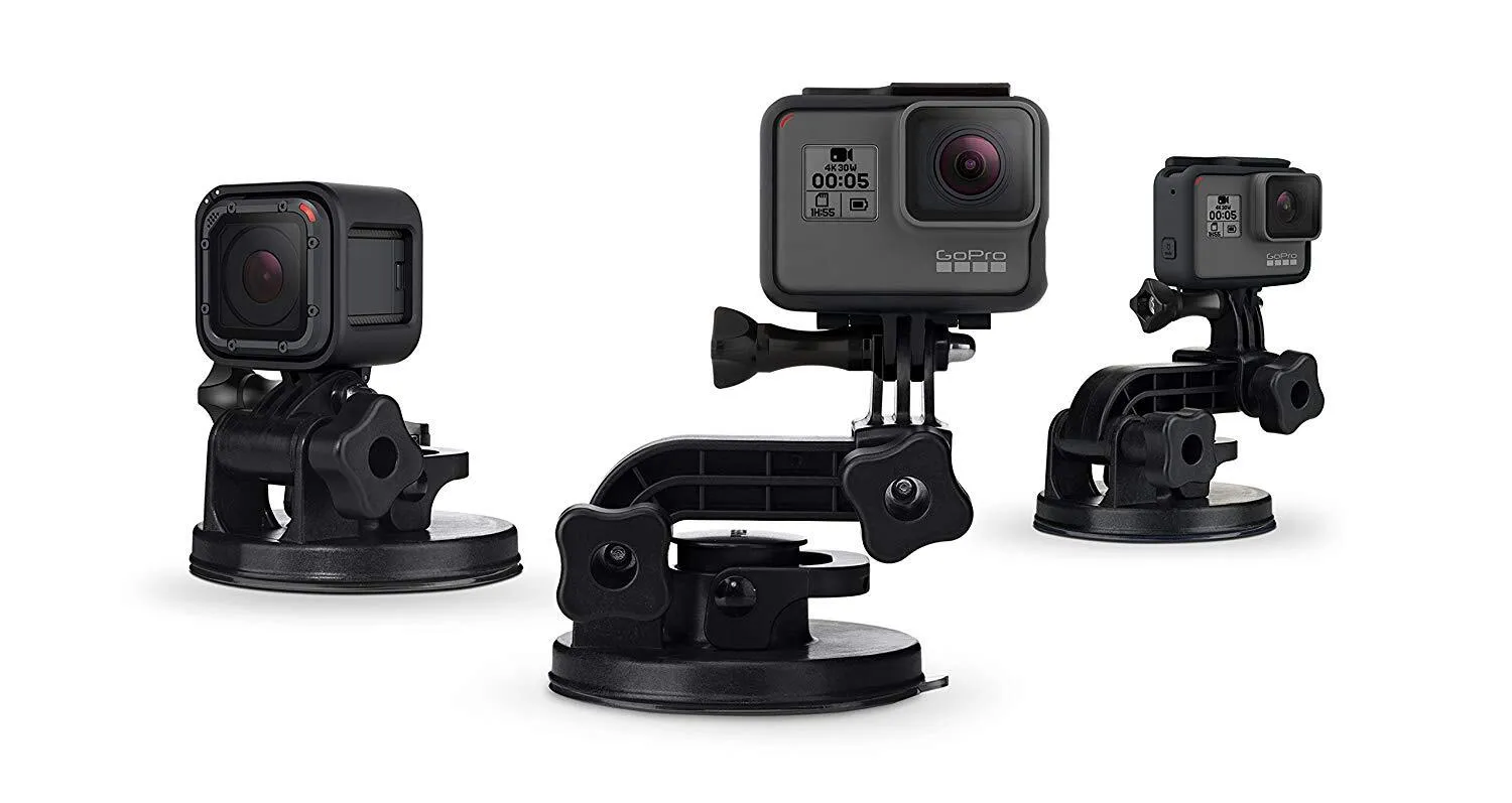 Attach your GoPro to cars, boats, motorcycles and more. This industrial-strength Suction Cup mount is proven at speeds of 150+ mph and engineered for stability and a broad range of motion. The short extension arm allows for ultra-compact mounting. Includes a standard base and a quick-release base for moving conveniently between shots and locations.