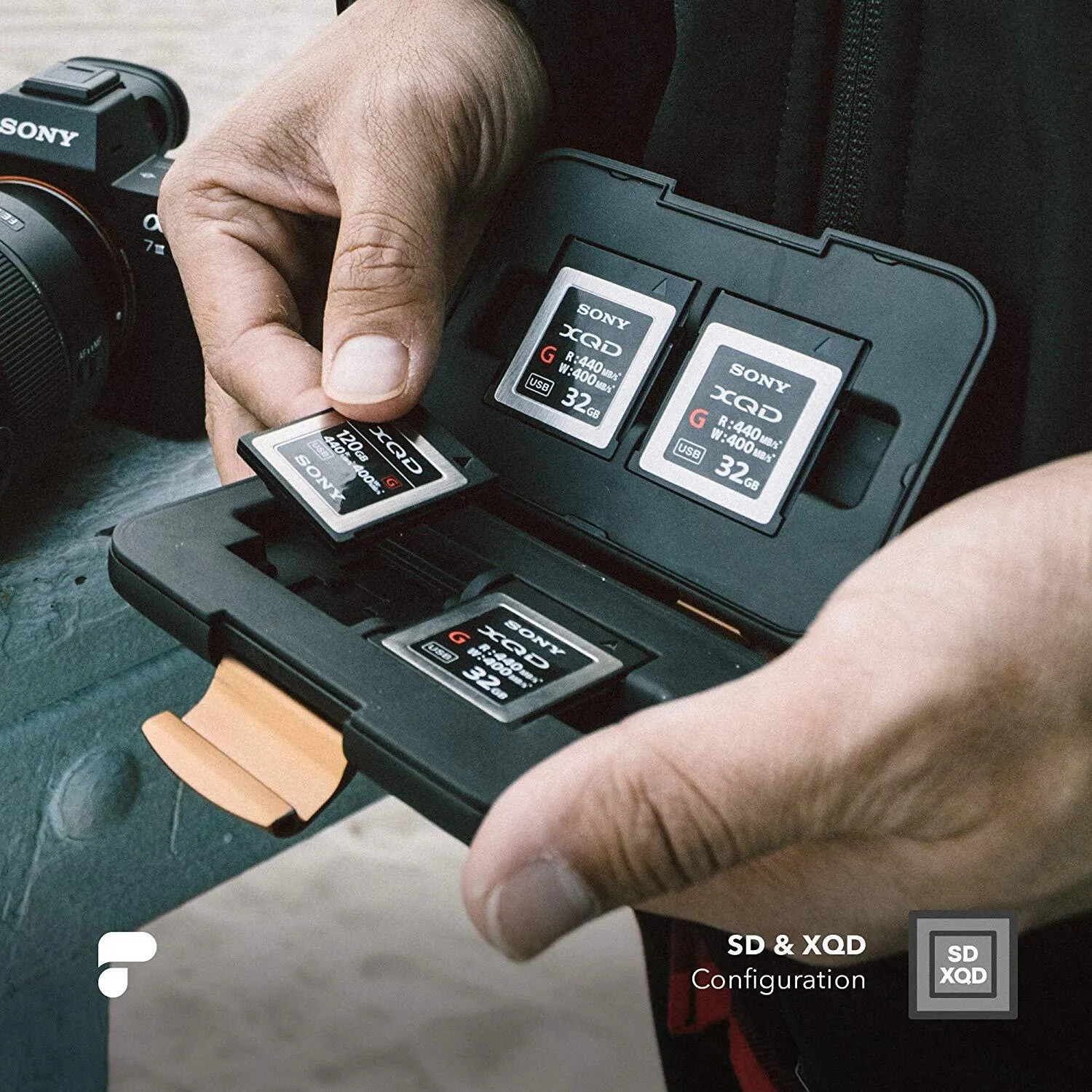 - Fits 4 XQD, 4 SD (full size), and 4 Micro SD cards for a total of 16 memory cards