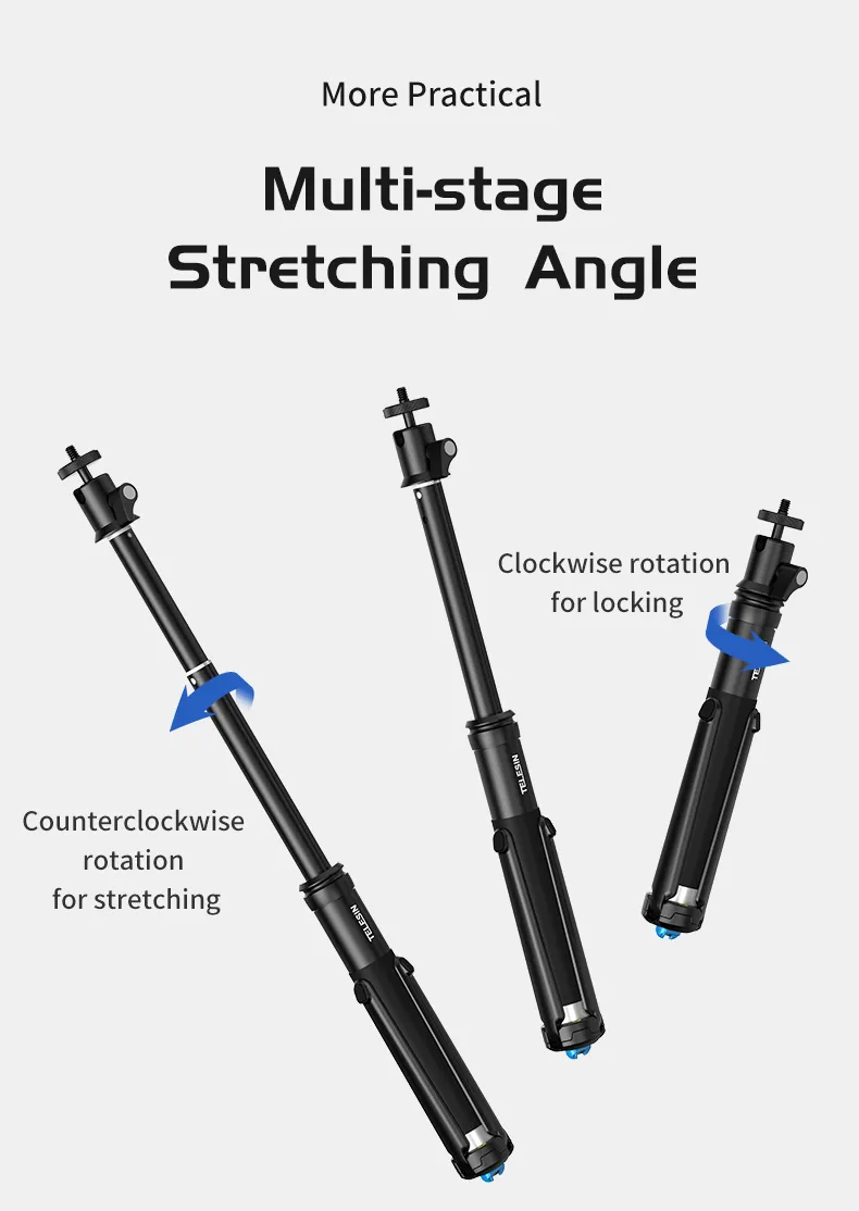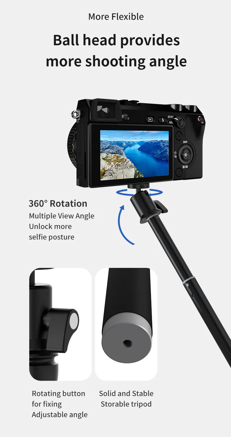 - 1/4"-20 Thread hole in the base allows you to mount the pole on any standard tripod and get your camera up even higher.