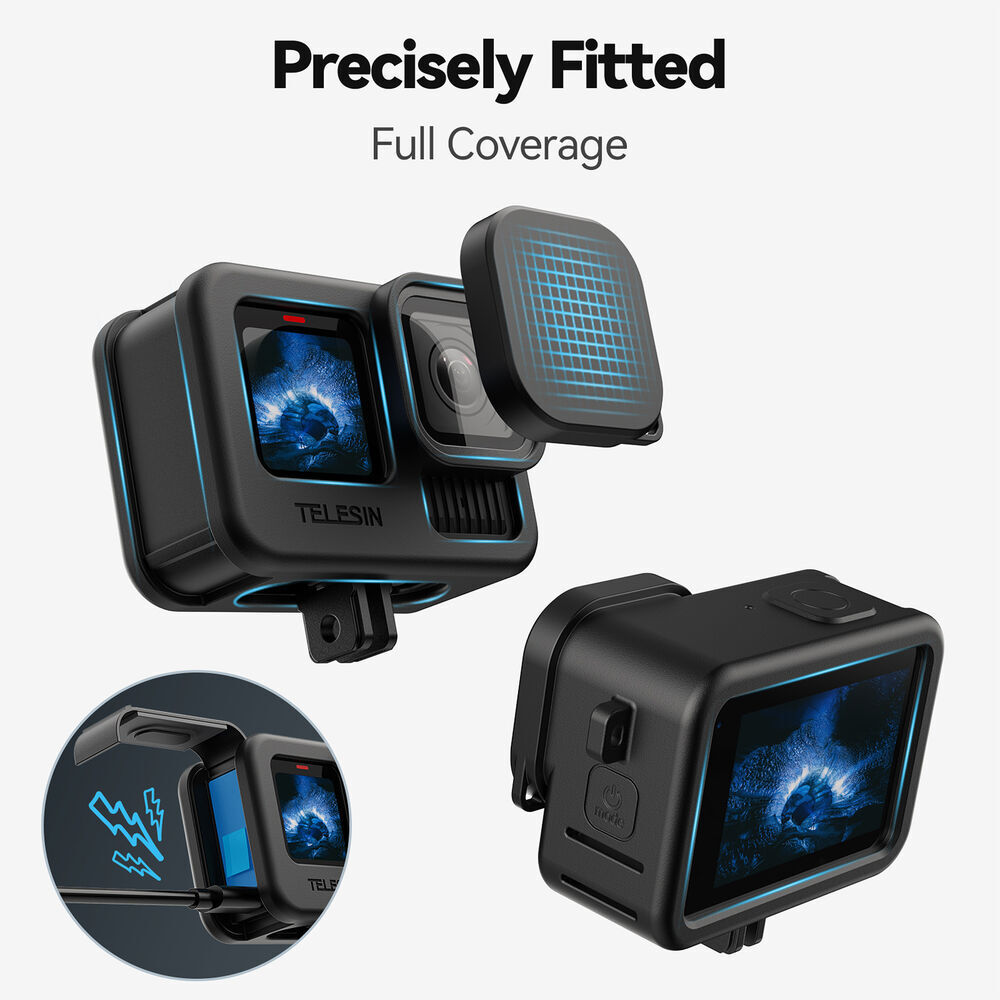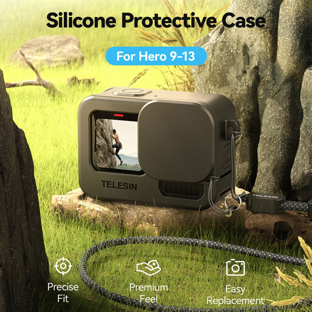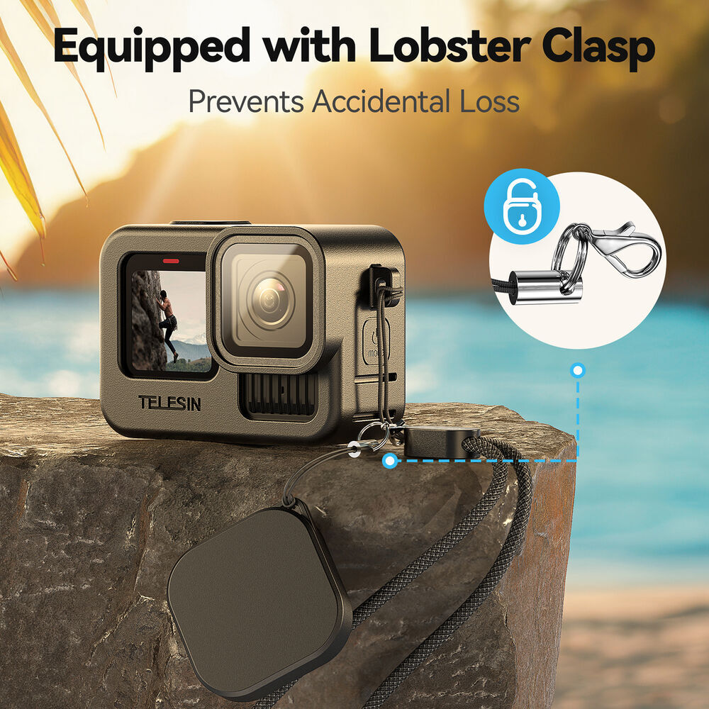 Telesin Black Silicone Protective cover / Lens Cover / Lanyard for GoPro HERO13 / GoPro HERO12 / GoPro HERO11 Black / GoPro HERO10 / GoPro HERO9 - Upgraded