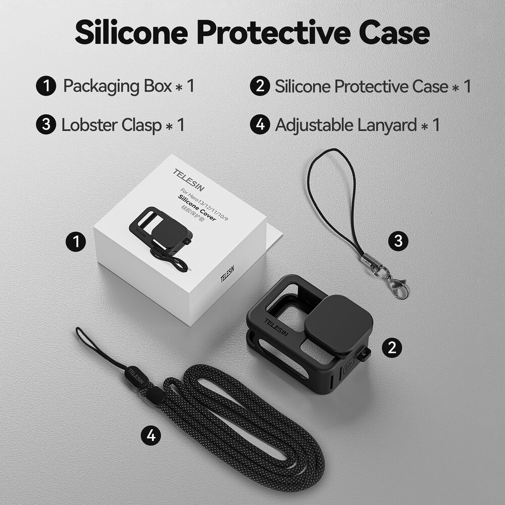 Telesin Black Silicone Protective cover / Lens Cover / Lanyard for GoPro HERO13/12/11 Black/10/9
