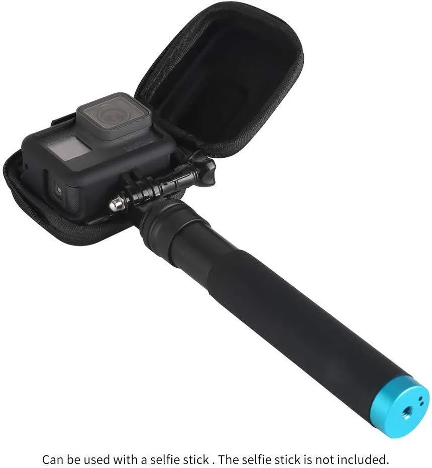 - Note: The selfie stick in the picture is NOT supplied, it's just for showing how to use the protective case with a selfie stick. Specially designed semi-rigid shell for GoPro HERO5, GoPro HERO6, GoPro HERO (2018), GoPro HERO7 and DJI OSMO ACTION1 Cameras