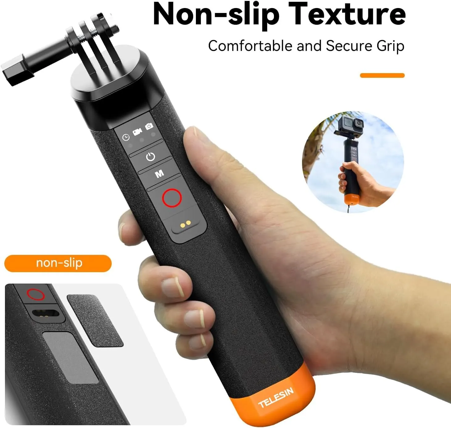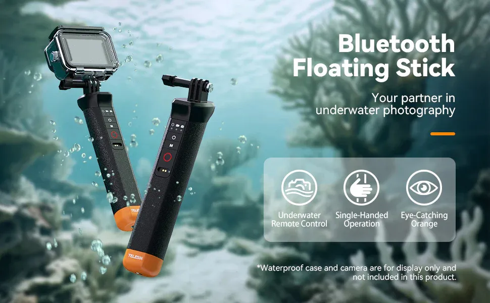 The Telesin Floating Hand Grip allows you to remotely control your camera underwater, making it easy to capture photos and videos beneath the surface. Telesin is the first company in the World to make a Bluetooth Remote control that works underwater.