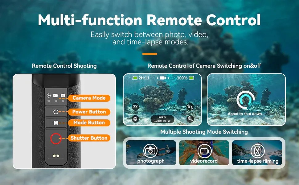 - Bluetooth Remote works underwater