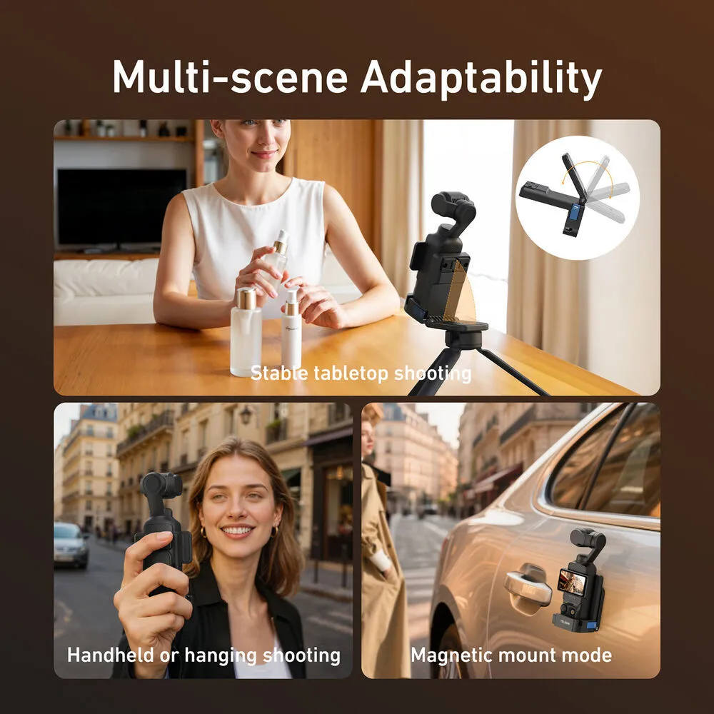 The Telesin Magnetic Mount Stand is designed to work specifically with your DJI Osmo Pocket 3, adding mounting and shooting versatility to your camera setup.