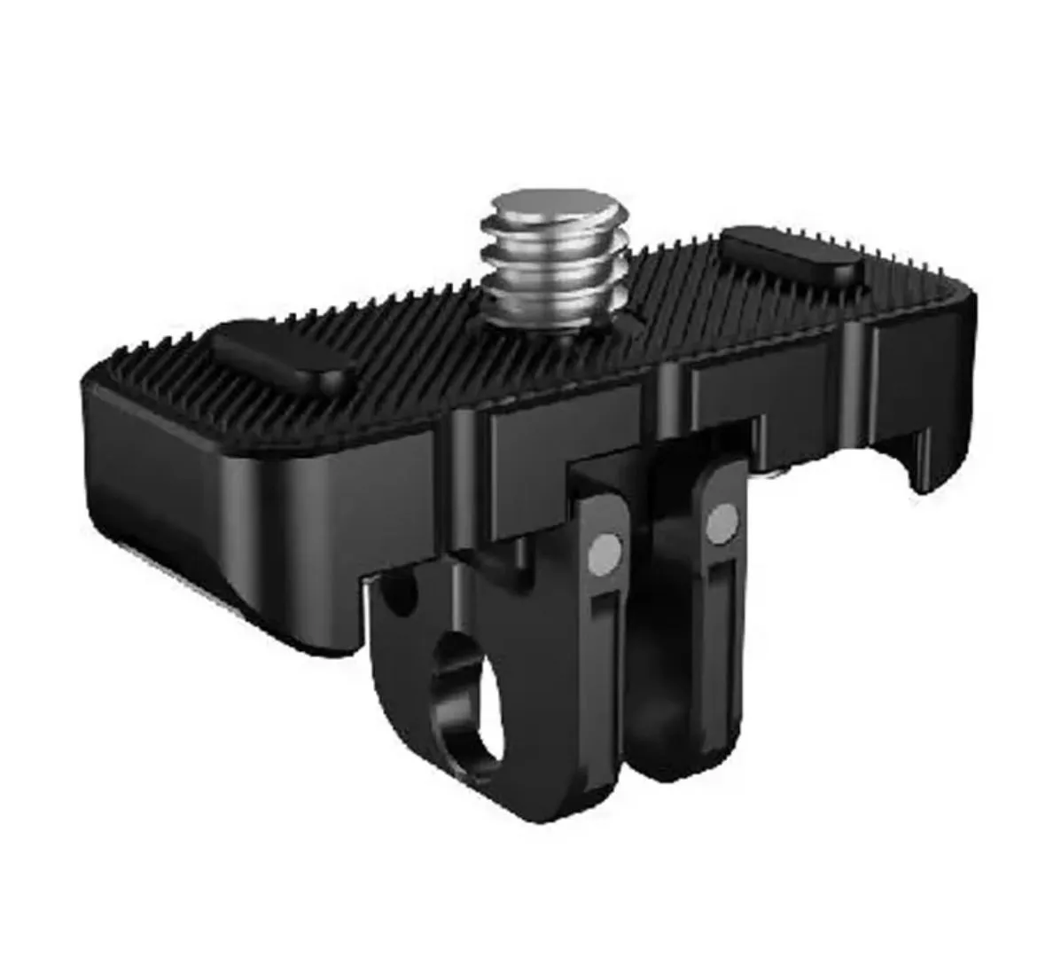 Secure your Insta360 X4 camera to a variety of mounting devices with this Magnetic Two-Claw Adapter from TELESIN. An anti-slip silicone pad on the surface of the adapter creates friction between the adapter base and your camera to reduce minor vibrations. The base is secured to your X4 camera via a 1/4"-20 screw thread that is tightened via the included mini Screwdriver. The adapter can be mounted to original Insta360 X4 magnetic mounts, most standard 1/4"-20 mounts such as tripods and grips via the 1/4" thread in the base OR flip out the GoPro-Style fingers to mount to a variety of GoPro Style mounts.