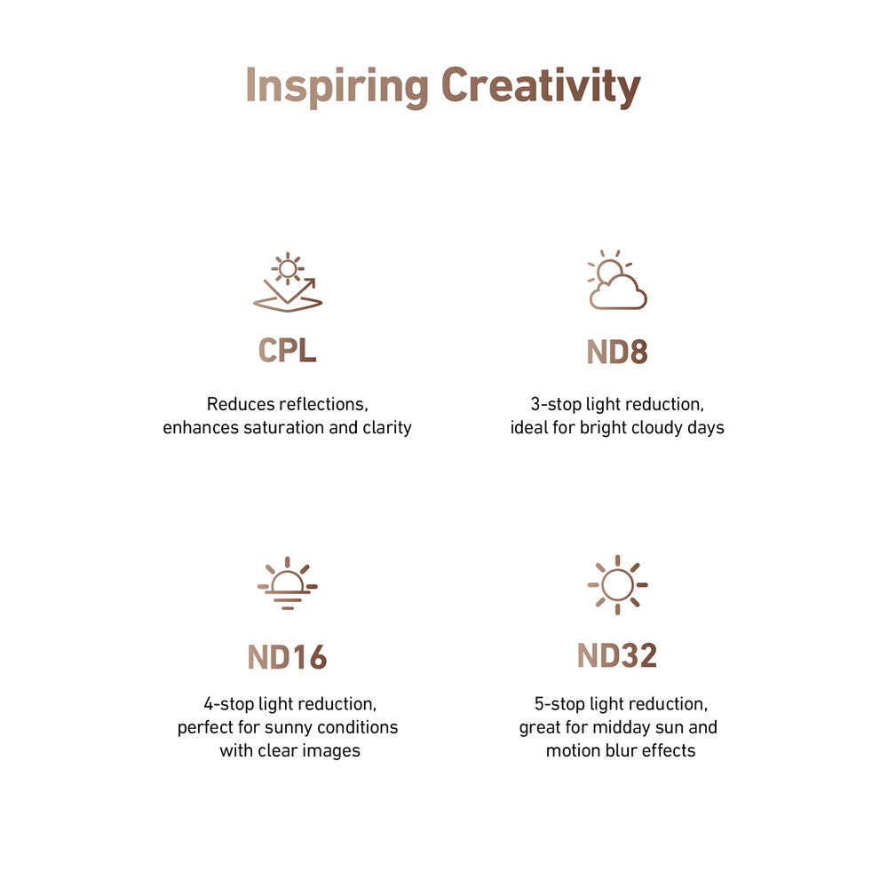 - 4 Filter Set: CPL + Three ND Filters