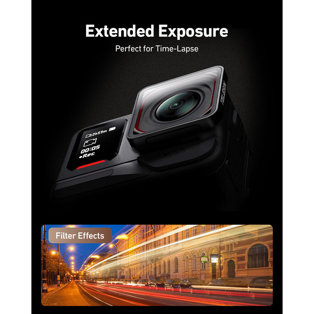 The CPL/ND Filter Set from TELESIN maximises your control over the image quality of your Insta360 ACE Pro or Insta360 ACE Pro2 footage, thanks to its inclusion of a Circular Polariser filter (CPL) to reduce light glare, plus three neutral density filters that cut the amount of light hitting your camera's sensor by varying f-stop increments. All the filters in this bundle work to enhance the colour saturation of your footage and can be quickly swapped with their push-on/pull-off design.