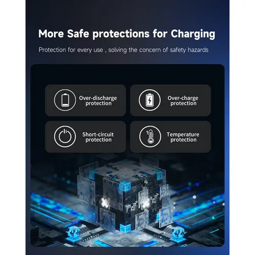 The unit features up to 20W fast charging (Charger NOT Included), which is approximately four times faster than ordinary charging. A low-current mode featuring automatic recognition upon plugging in a device is suitable for select lights and speakers, mobile phones, and Bluetooth headsets. Charge your batteries and up to two devices simultaneously at normal speed, and charge the unit itself in 2.5 hours with a fast charger (Charger NOT Included).