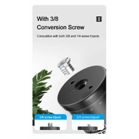 - 3/8"-16 bottom thread, with additional 1/4"-20 conversion screw. Use with Professional 3/8" OR Standard 1/4" tripods.
