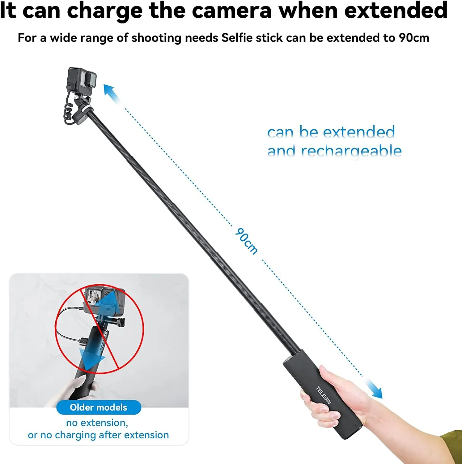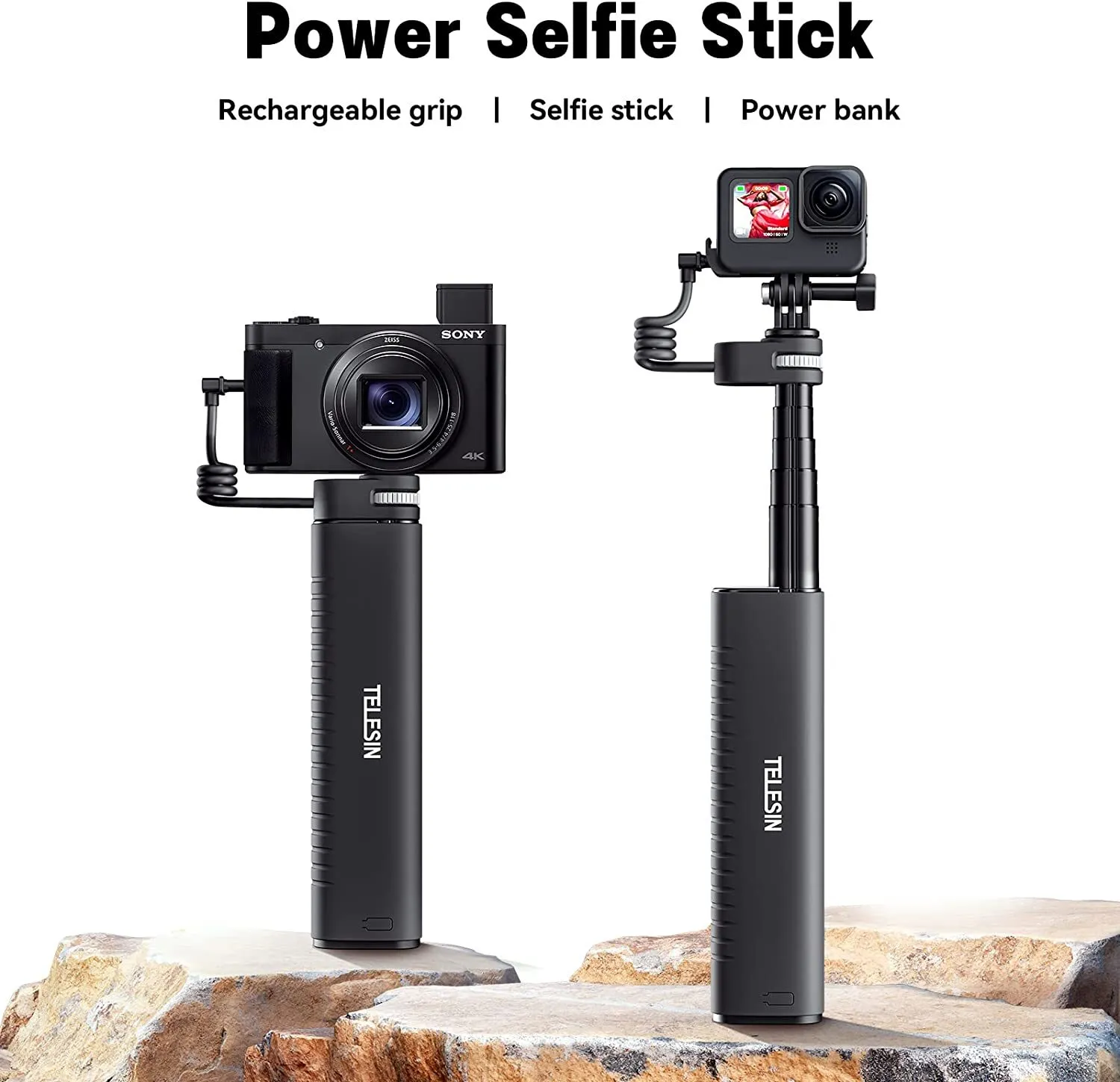 Telesin Rechargeable Selfie Stick | For GoPro HERO13 / GoPro HERO12 / GoPro HERO11 Black / GoPro HERO10 / GoPro HERO9 - 10,000mAh