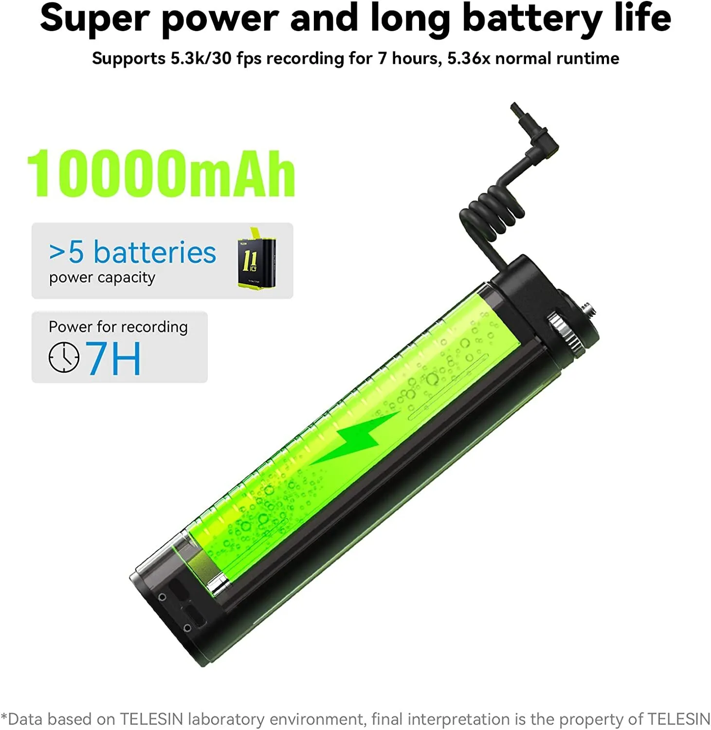 - Huge 10,000mAh Capacity. GoPro camera lasts around 6.5 Hours in 5.3k/30fps mode