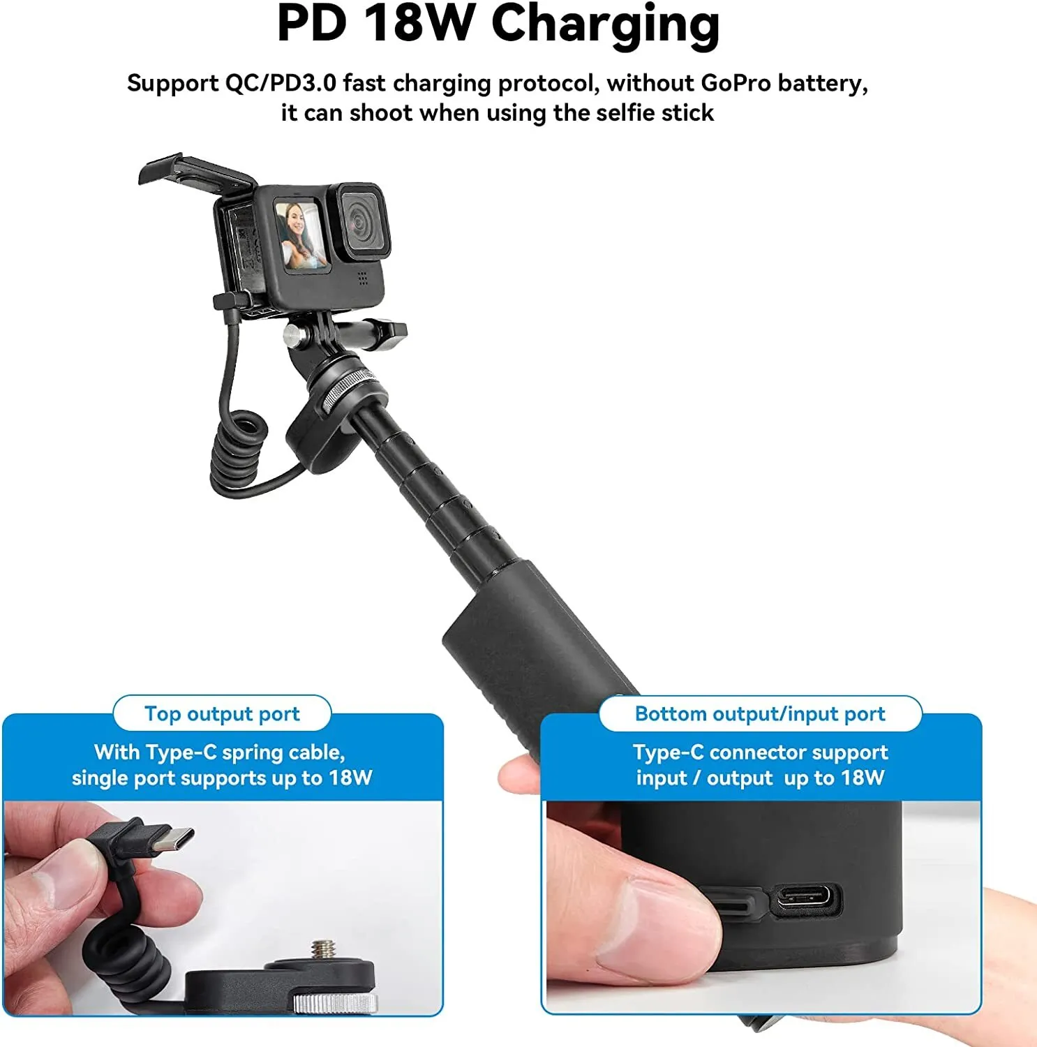 - Suitable for GoPro HERO13 / GoPro HERO12 / GoPro HERO11 Black / GoPro HERO10 / GoPro HERO9 using the attached USB Type C Cable.