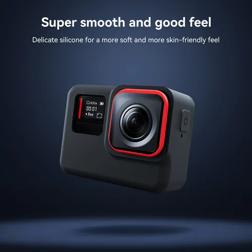 The Telesin Silicone Protective Cover protects your Insta360 ACE camera against bumps and scratches. This form-fitting skin includes a lens cover and maintains access to the camera's ports, buttons, and displays. Mounting holes provide the ability to add an optional lanyard.