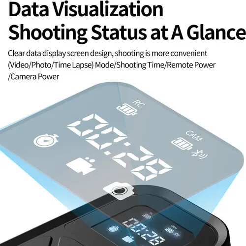 Control up to five compatible GoPro HERO13 / GoPro HERO12 / GoPro HERO11 Black / GoPro HERO10 / GoPro HERO9 / GoPro HERO8 or GoPro MAX cameras from up to 80m away on your next action-packed adventure with the TELESIN T10 Bluetooth Remote Control. A display screen with control buttons shows the power level for paired cameras and the remote itself, while also enabling you to toggle between image, video, and time-lapse modes as well as set a shot timer.