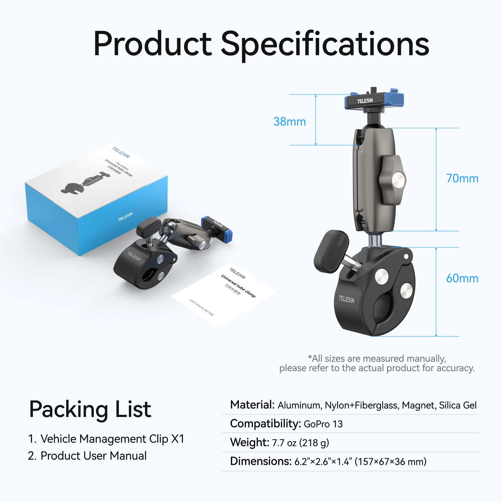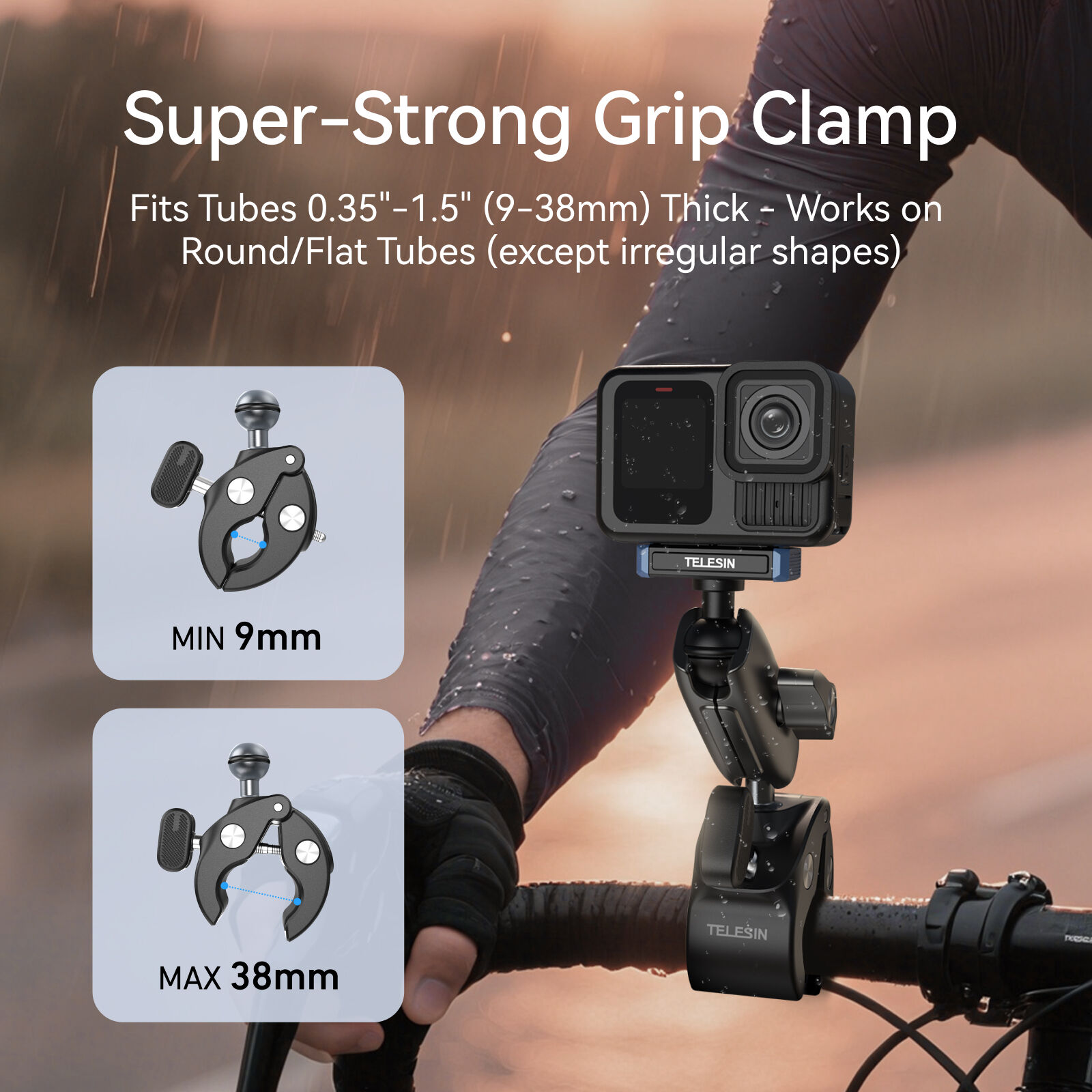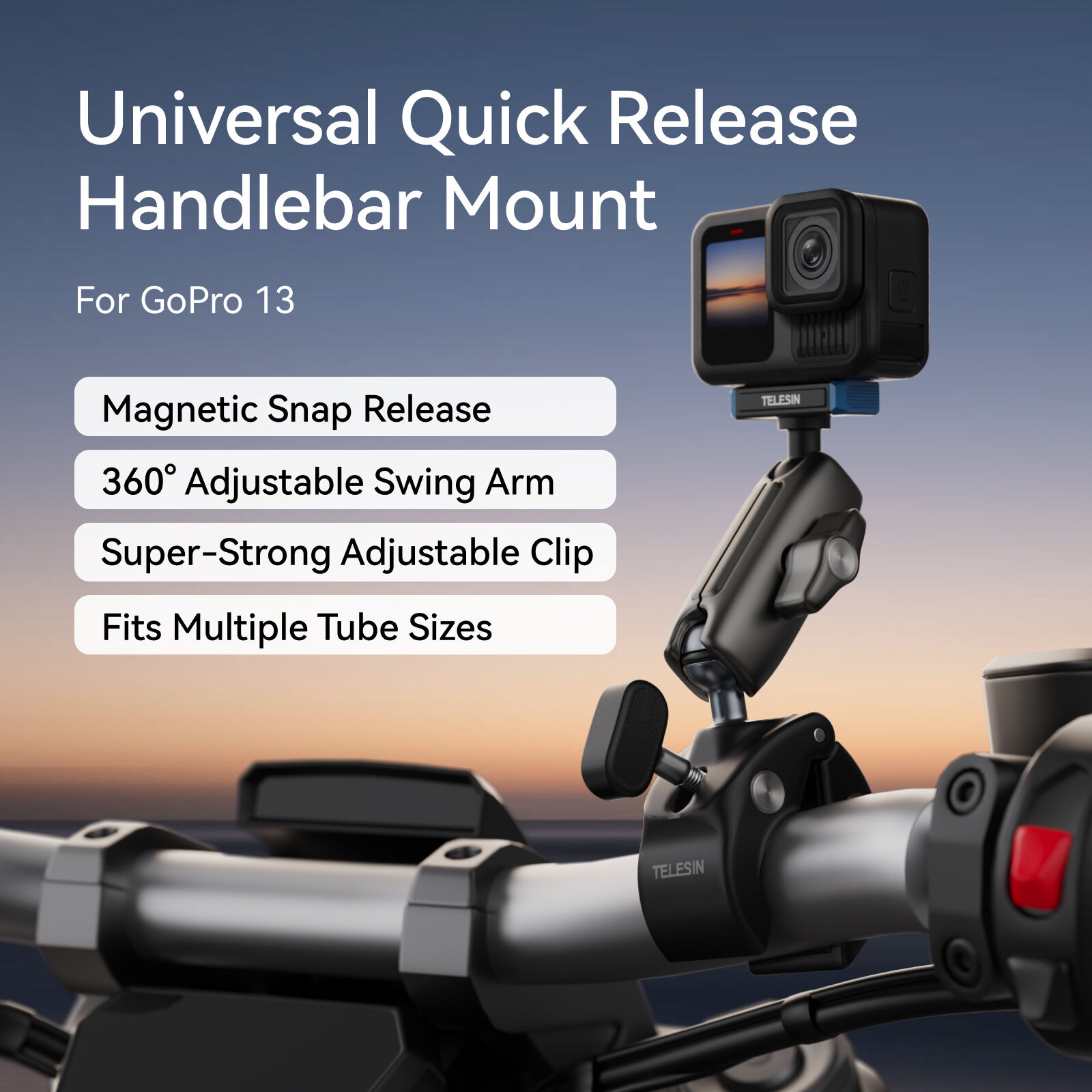 Telesin Tube Clamp with Magnetic Quick Release Mount | for GoPro HERO13 / GoPro Lit Hero / GoPro MAX2 cameras - Handlebar Mount
