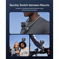 Magnetic Quick Release Mounts or Magnetic "Latch" mounts are the fastest way to switch Action cameras between different Mounts. Ideally, each mount you are using should have a Magnetic quick-release mount already attached to it to expedite the process. Quickly detach the camera from one mount and reattach it to another.