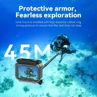 Dive to depths of up to 45m with your DJI Action3 or DJI Action4 camera thanks to this Waterproof Housing Case from TELESIN. Durable, high-transparency polycarbonate construction and tempered glass protect your DJI Action3/Action4 camera from water and drops while maintaining a crystal-clear image with 95% light transmission.