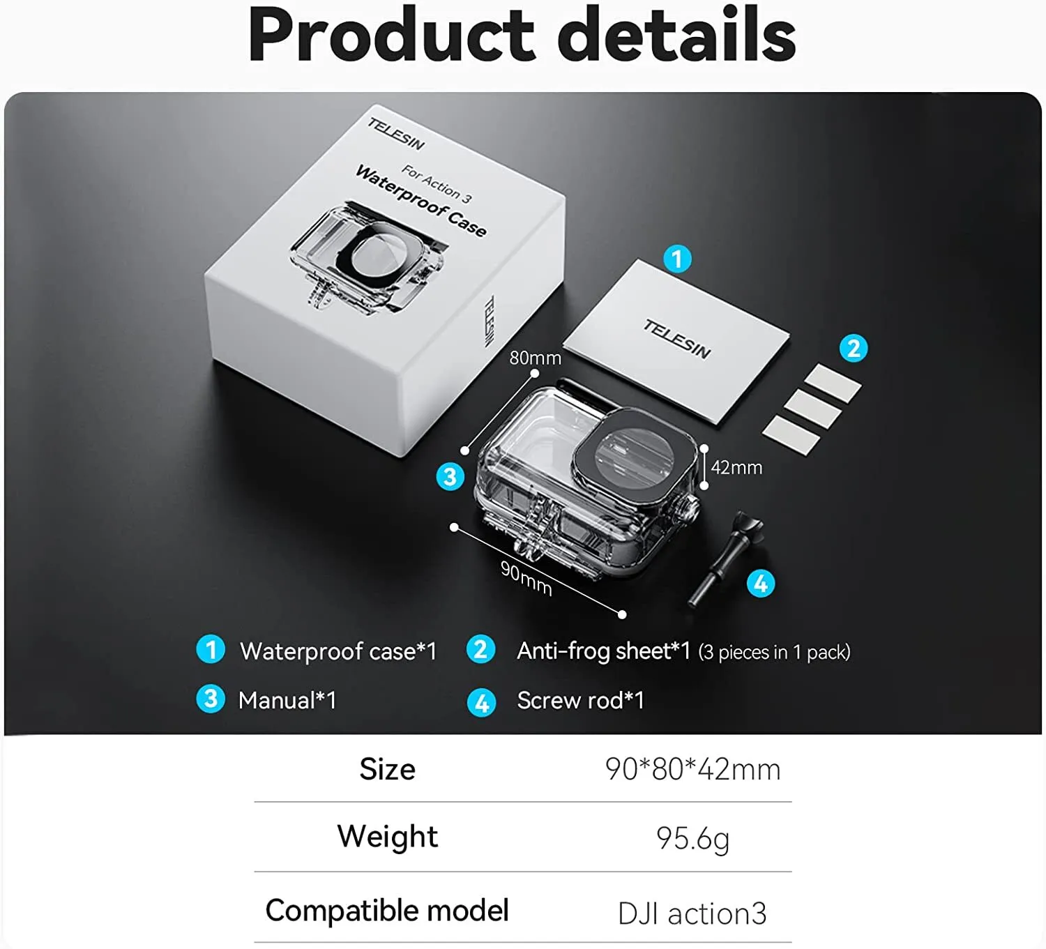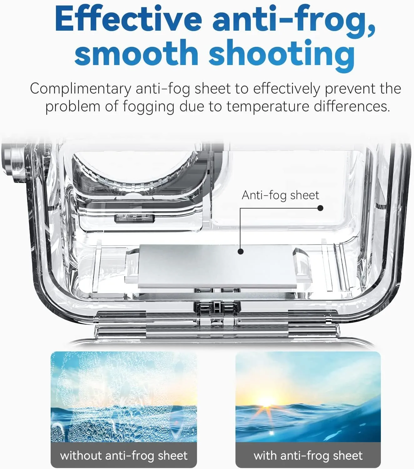 - Includes 1 x waterproof case, 3 x Anti-Fog Inserts, 1 x Thumbscrew, 1 x manual