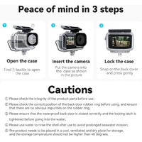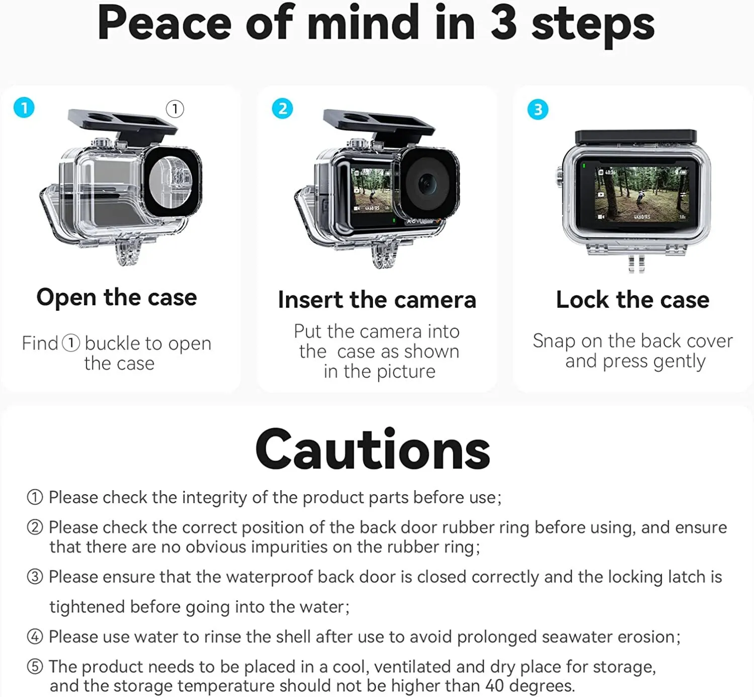 1) Before first use, we suggest you test the Housing in water without the camera to check the case for waterproofness!