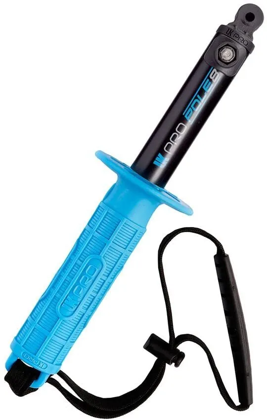 The pole is extra rugged for extreme activities but still lightweight. It has a direct GoPro-style attachment on top (UK Pro Thumbscrew included) and allows for full camera tilt.