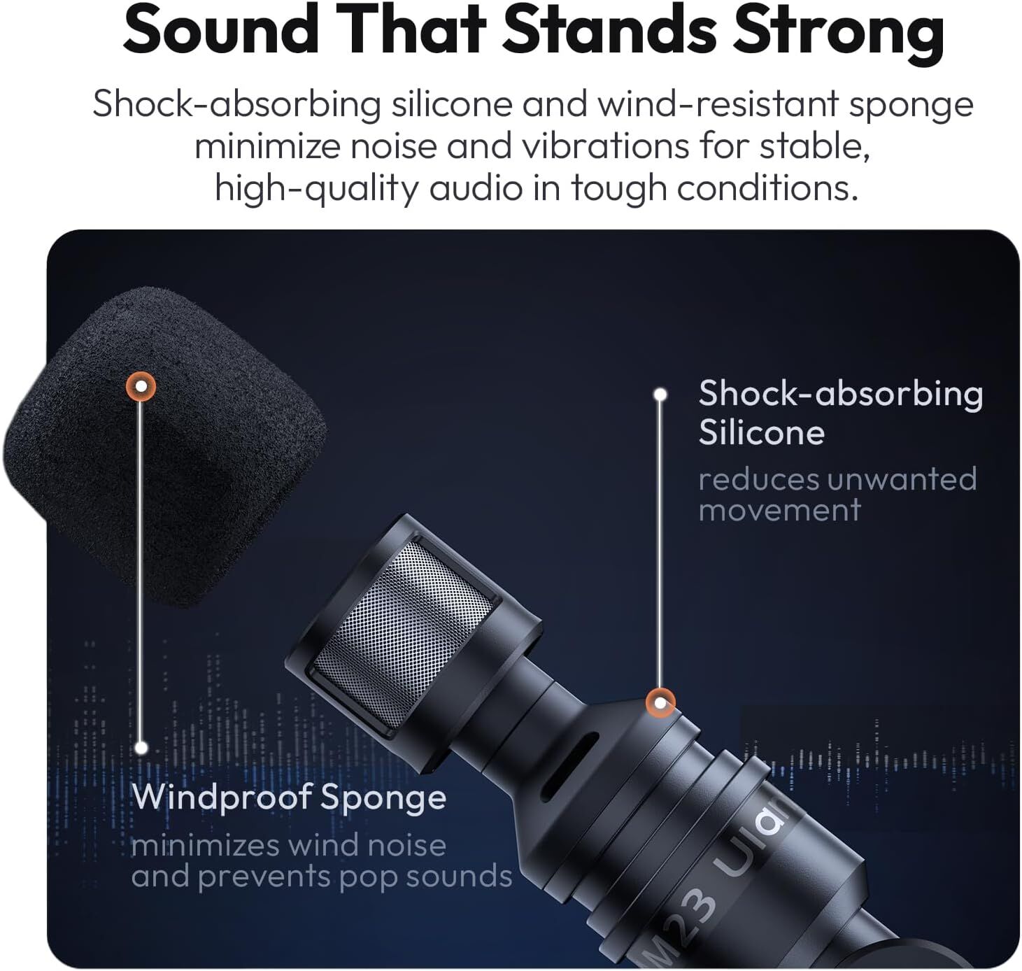 - Sound That Stands Strong: Shock-absorbing silicone and wind-resistant sponge minimise noise and vibrations for stable, high-quality audio in tough conditions.