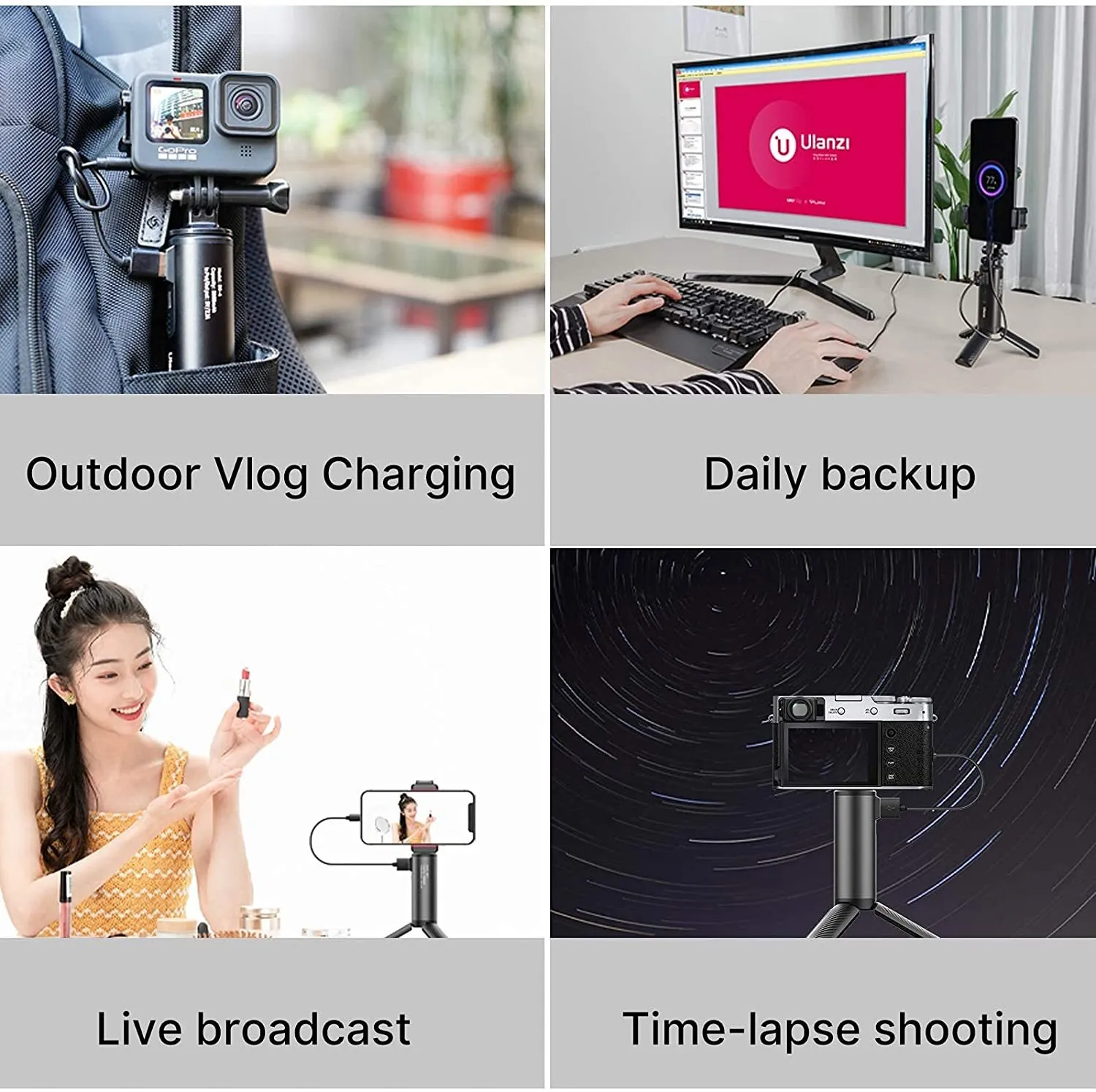 Ulanzi BG-4 Powered Hand Grip for Action Cameras - 5000mAh - Built-In Tripod