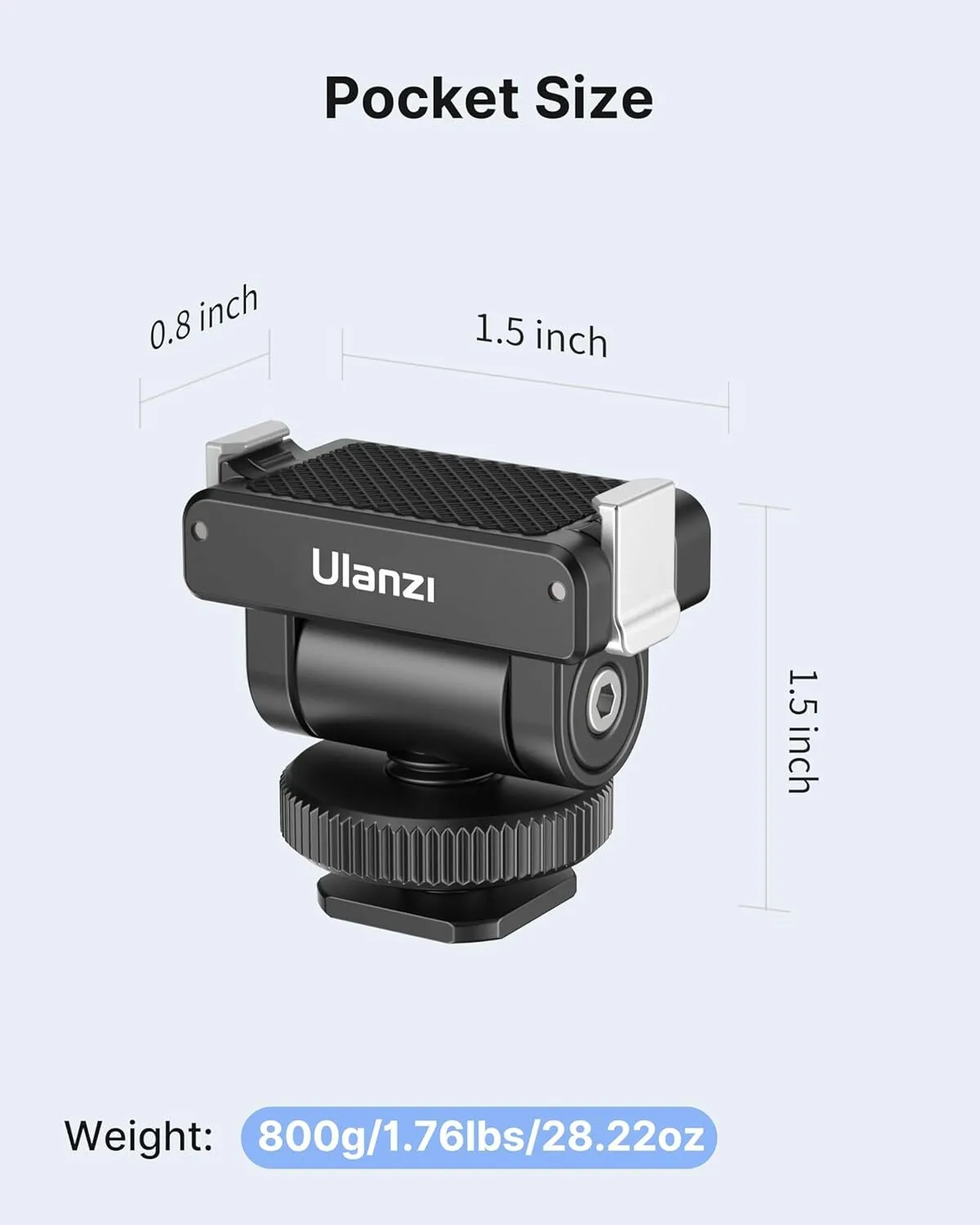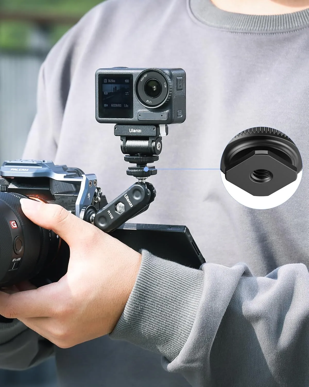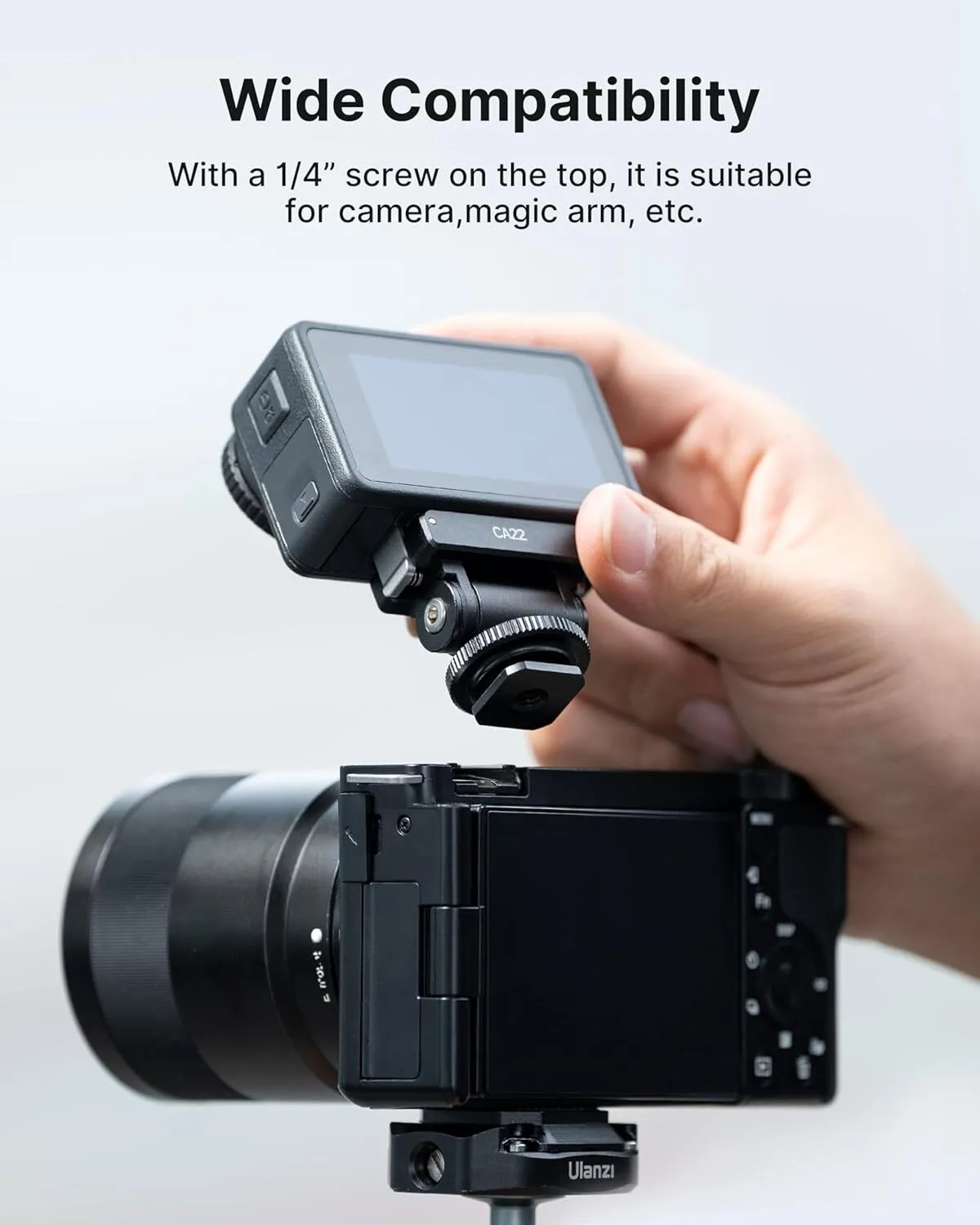 The Ulanzi CA22 Cold Shoe Mount Adapter allows you to mount your DJI Action3, Action4 or Action5 Pro camera on top of a DSLR or any cold shoe type Mount.