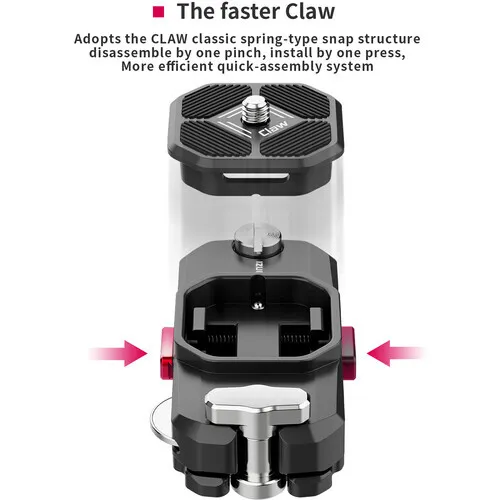 The clamp mechanism tightens securely with a T-type cyclone lock and features a round-notch lock with a Coin-shaped wrench that has a magnetic storage slot, so it is always handy. The Claw quick-release system is spring-loaded for ease of use and features a secure locking lever to prevent accidental release.
