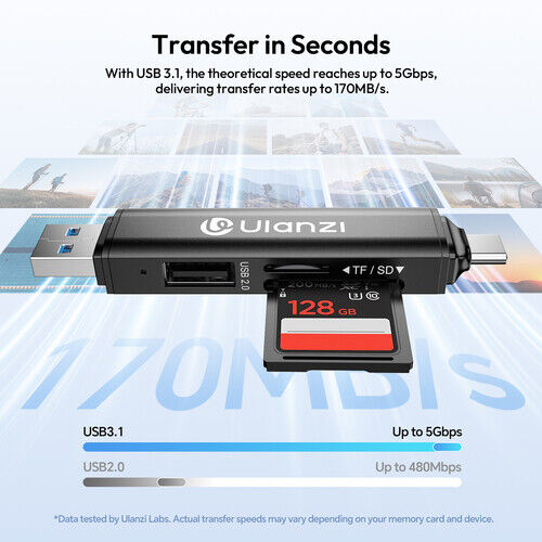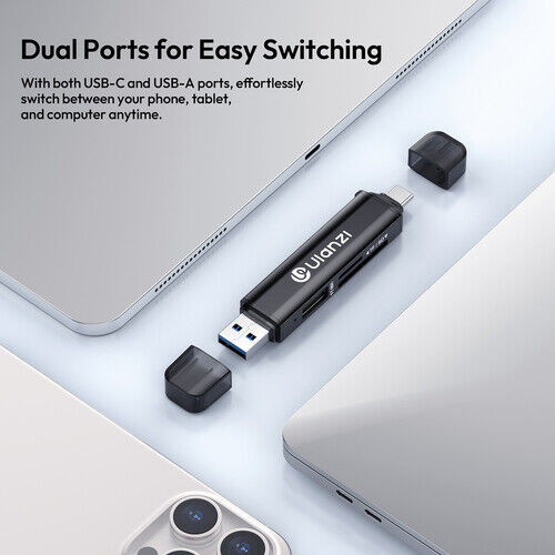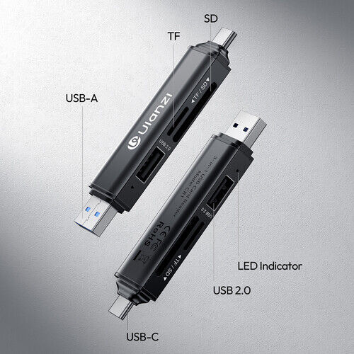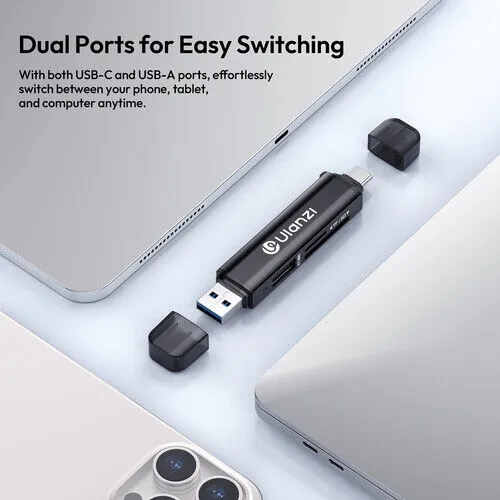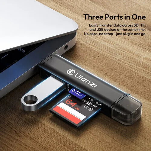 Easily transfer data across SD, microSD, and USB devices at the same time. No apps, no setup - just plug in and go!