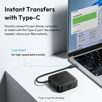 Directly connect to your phone, computer, or tablet with the integrated USB-C cable. No adapters are needed, and you'll be able to share your files instantly.