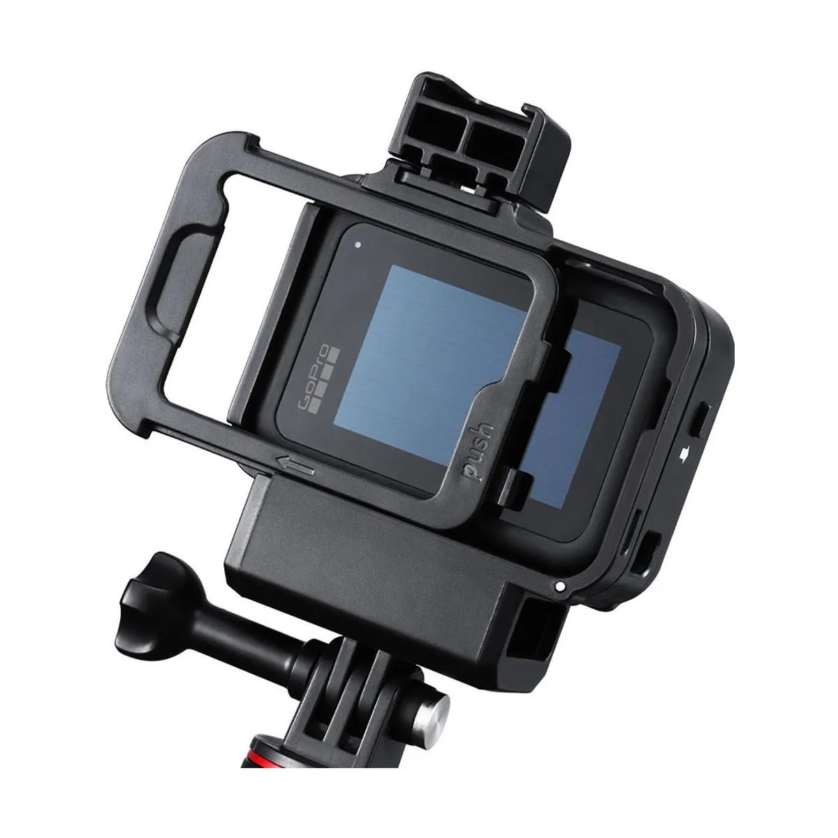 NOTE: GoPro cameras, Tripod adaptors, Tripods, Thumbscrews, Video Lights, Microphone adaptors, and Microphones are shown for demonstration purposes ONLY and are NOT included.