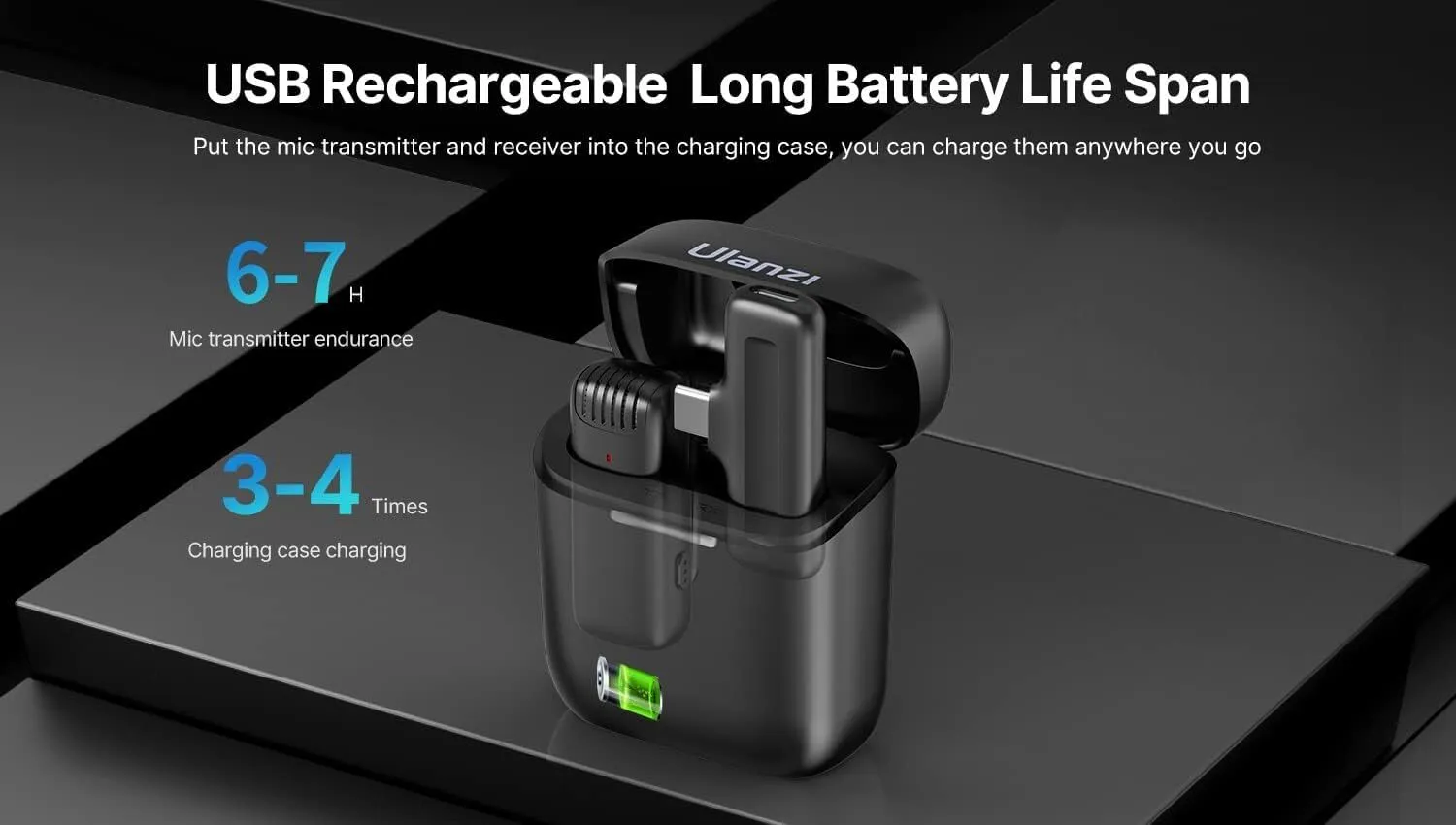 - Long-lasting Charging Case: The storage case is also where the microphone is charged. The storage box contains a 300mAh Battery, and once fully charged, the microphone can be fully charged up to 3-4 times from the charge case, and the microphone and receiver can continue to work for about 6 hours per charge. Easy to store, lightweight, and portable, weighing only 51g.