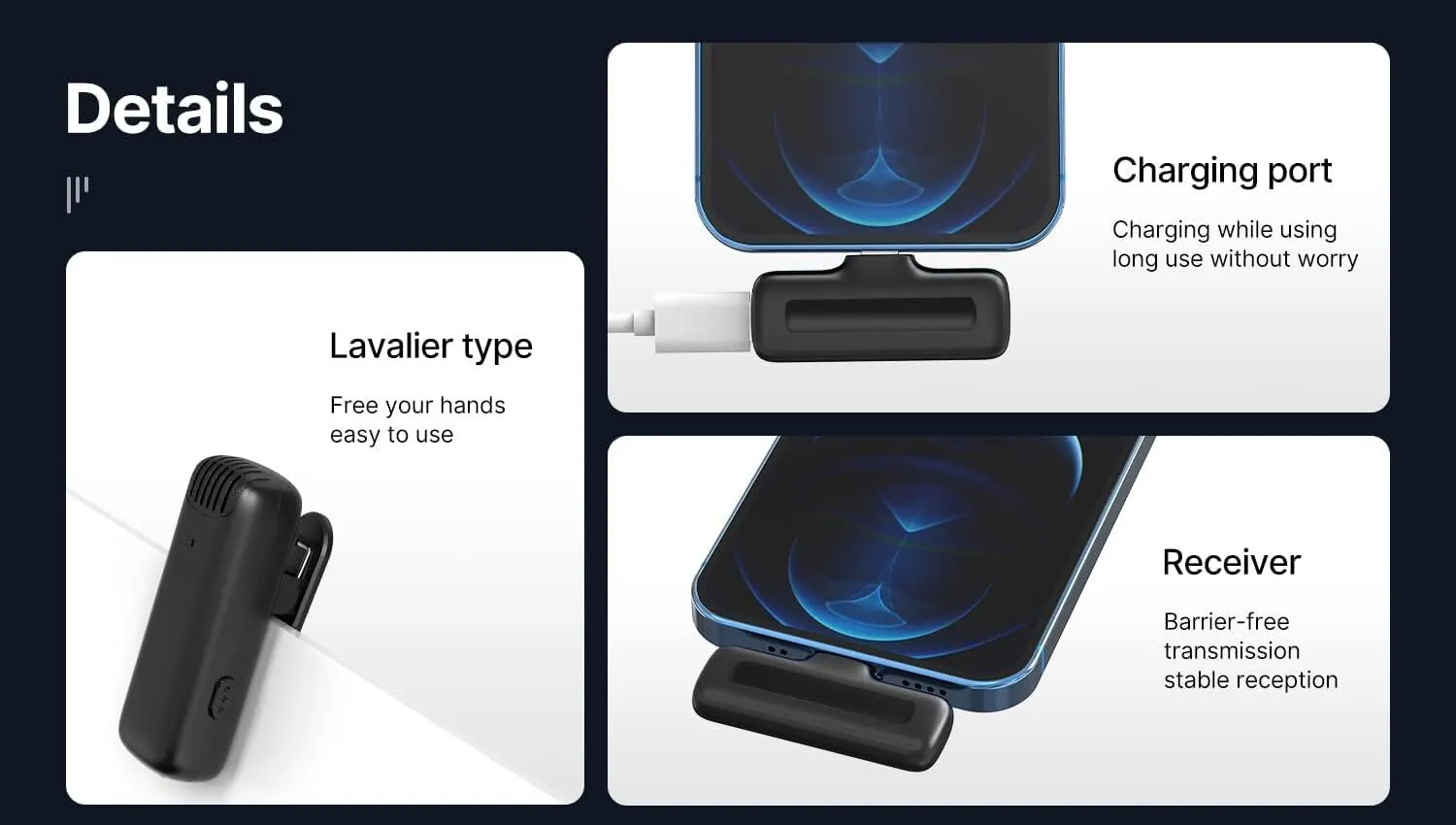 - Compatibility: ULANZI J11 Wireless Lavalier microphones feature a Type-C Interface and fit most SmartPhones and Tablets with a Type-C Port.
