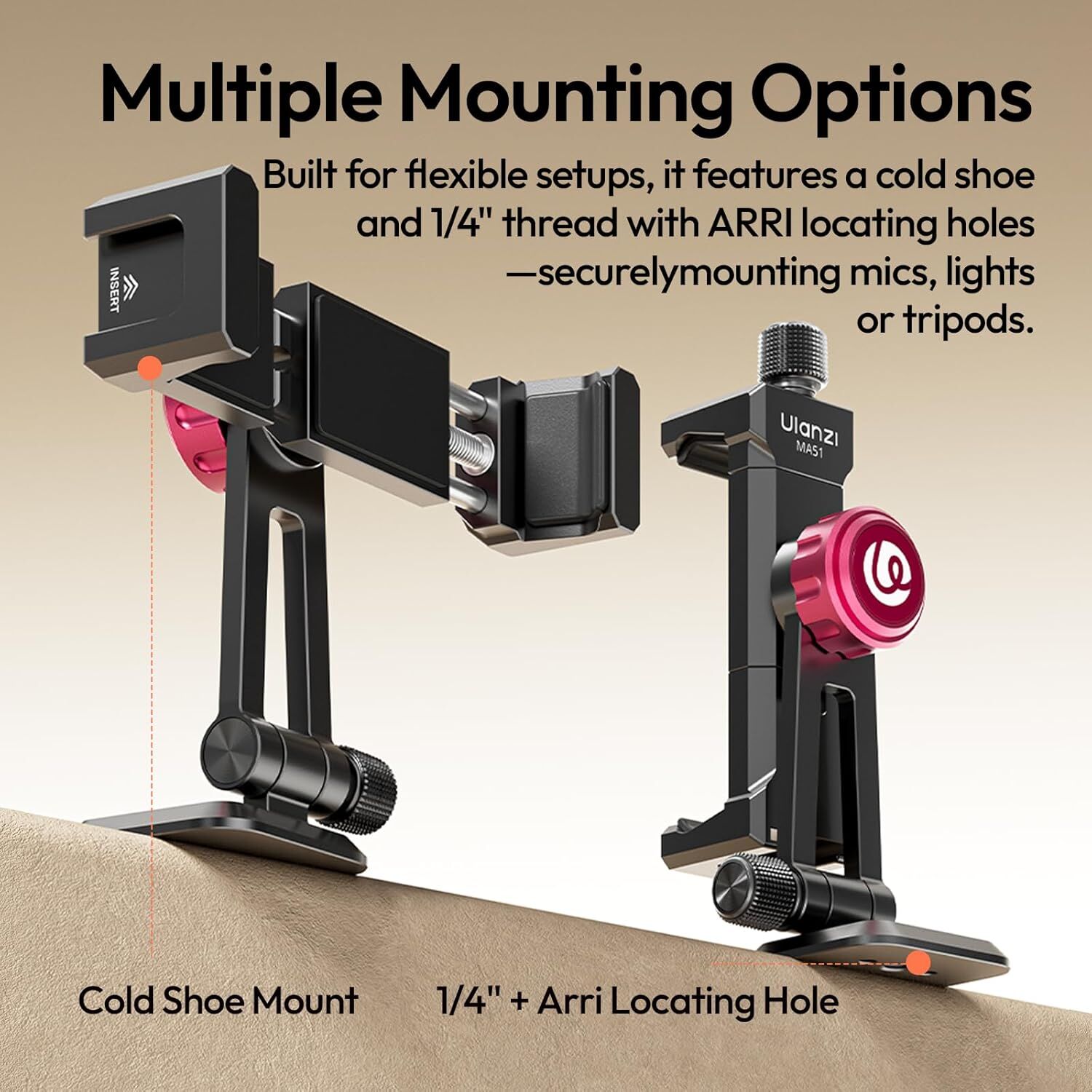 ULANZI MA51 QuickClip Phone Clamp | Smartphone Holder | with Cold Shoe Mount