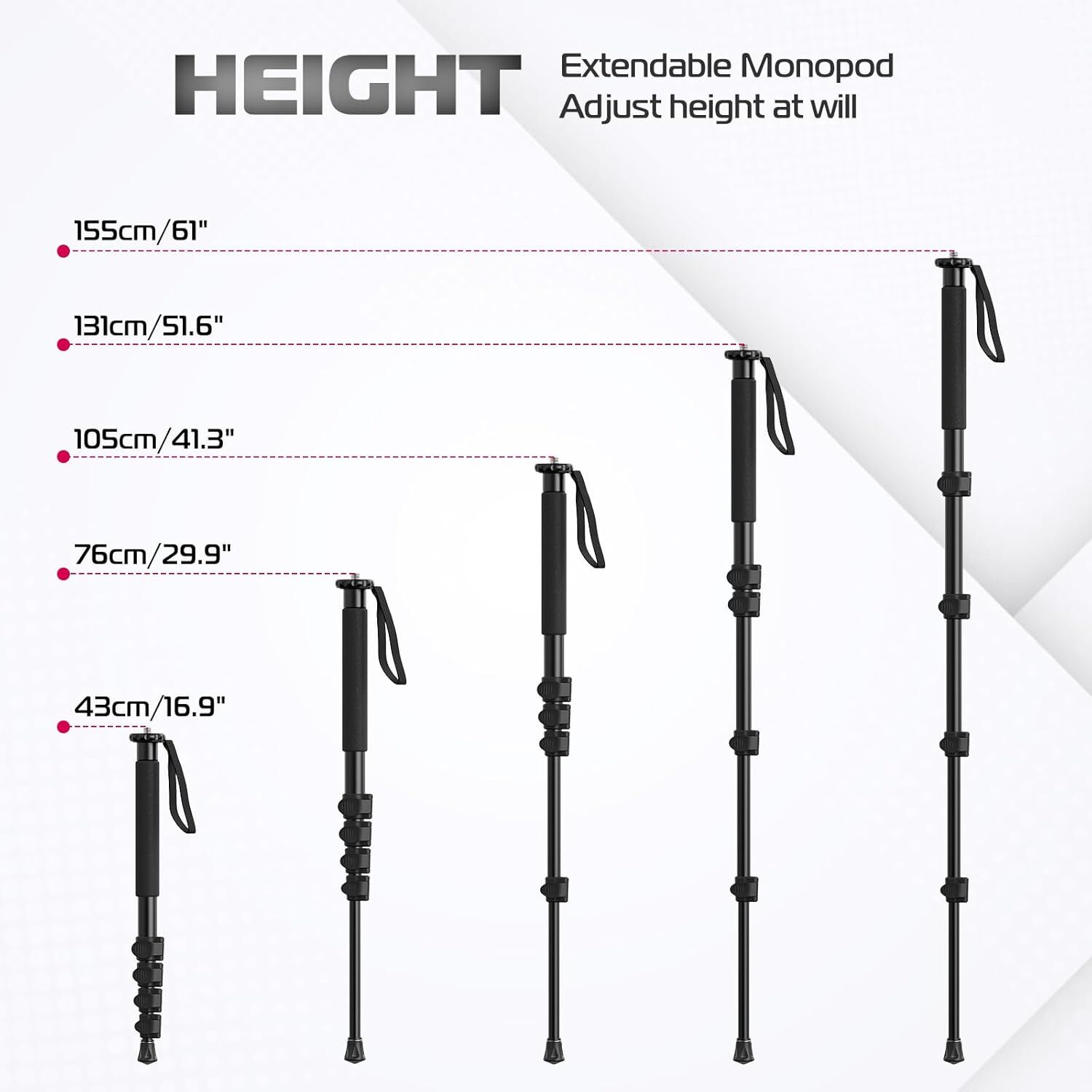 The Ulanzi TB12 Camera Monopod extends from 43cm up to a height of 155cm.