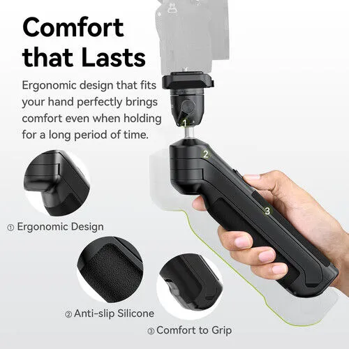 It can be used as a standard Hand Grip or inverted for top-handle mode, which is perfect for low-angle shots and dynamic action. Capture immersive camera angles with ease. Allows you to smoothly manoeuvre the camera just inches off the ground, whether you're filming dramatic product close-ups, dynamic sports footage, or cinematic establishing shots.