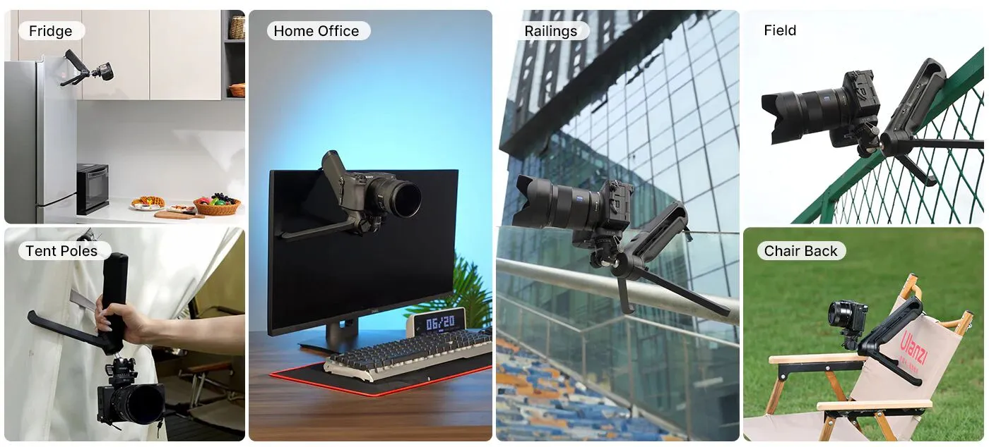 In Mantis Mode, you can clip the tripod to a fence and other surfaces up to 4" of thickness, thanks to its integrated hidden clip to elevate your shooting angle and achieve perspectives that would otherwise be impossible.