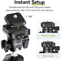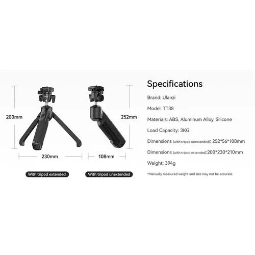 The Ulanzi TT38 Click Open Tripod Grip is a compact Camera Hand Grip that quickly converts to a versatile tabletop tripod with one press of a button. Its maximum height of 200mm is ideal for tabletop use, while its handheld mode height is 252mm, which is ideal when vlogging or shooting selfies. The greatest convenience of this tripod is its ability to extend the legs with just one click using its push button. A 1/4"-20 mounting screw will directly attach to a wide range of DSLR and Mirrorless cameras weighing up to 3kg.