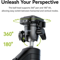 A ball head mount provides 360° panning and 180° tilting, letting you switch from horizontal to vertical orientation.