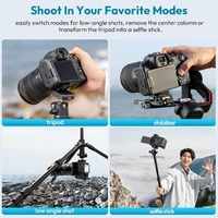 Switch effortlessly between modes to capture low-angle shots or remove the centre column to convert the tripod into a selfie stick.