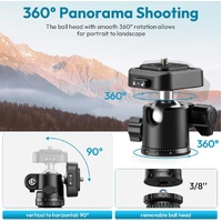 The removable ball head rotates 360° and can be adjusted from portrait to landscape mode with ease.