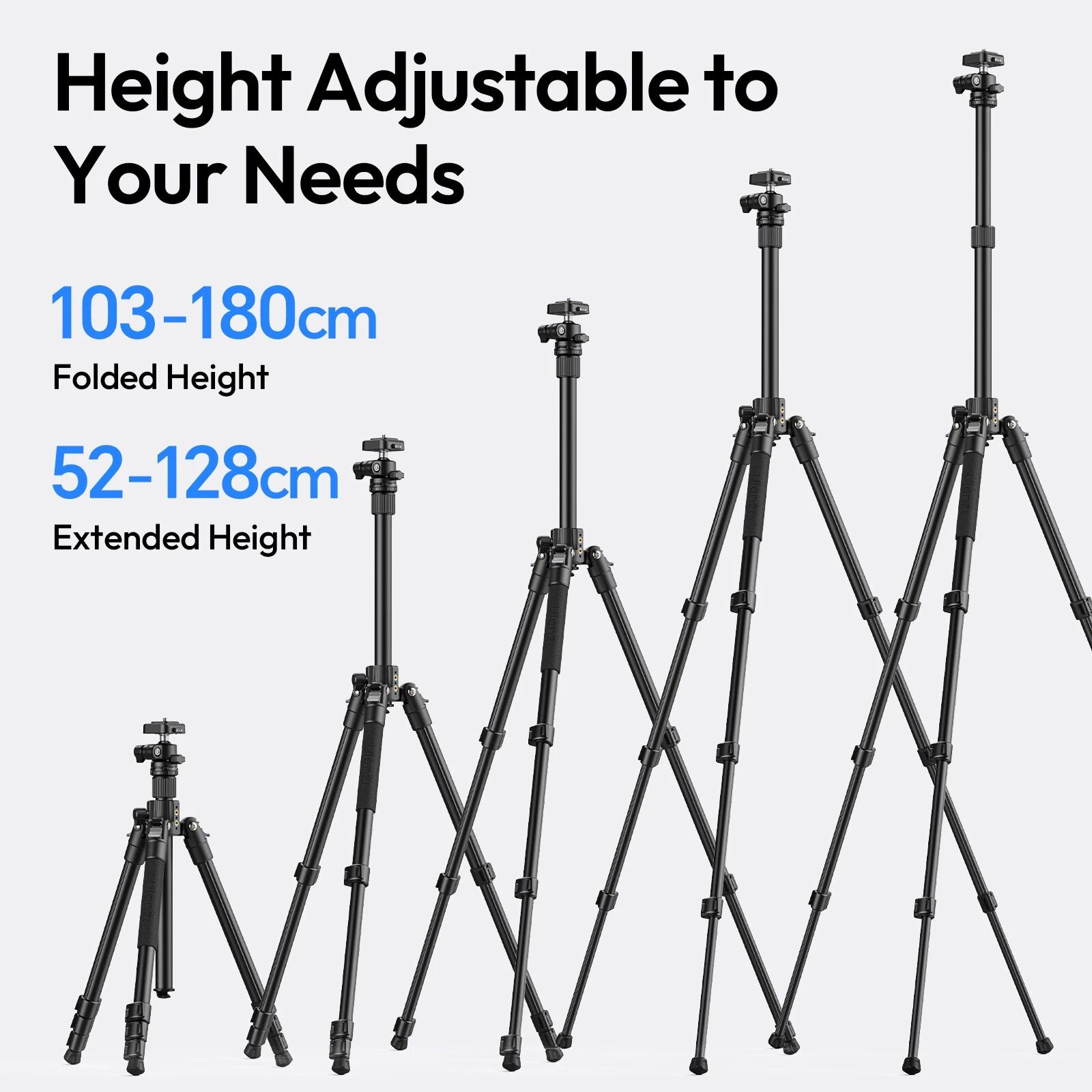 Weighing just 1.2kg, the tripod is made from durable aluminium alloy and ABS plastic, providing a perfect balance of strength and portability.