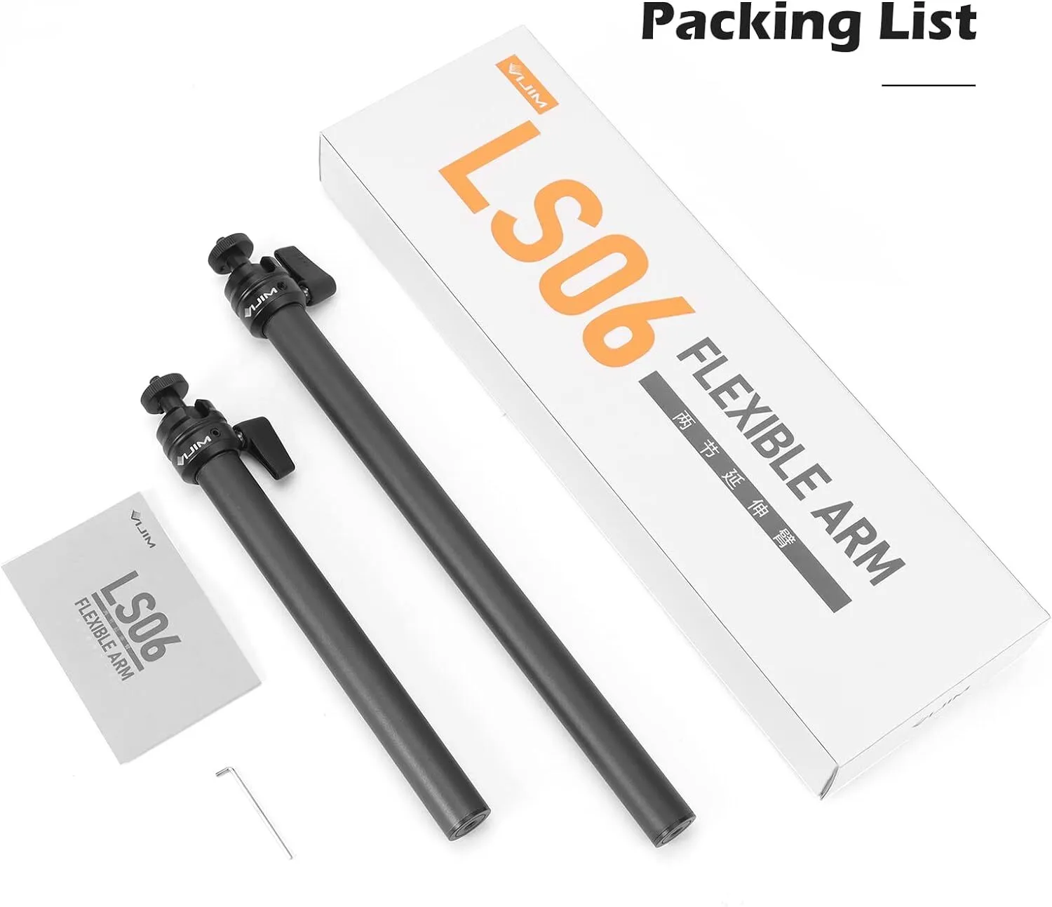 Includes: 1 x Flexible Arm Mount (made up of 2 sections with Ball Heads), 1 x Allen key