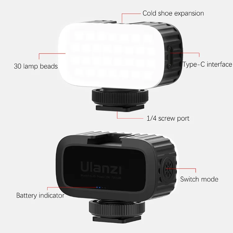 Ulanzi VL30 Mini LED Video Light | with Cold Shoe Mount for Action Cameras / Smartphones / DSLR