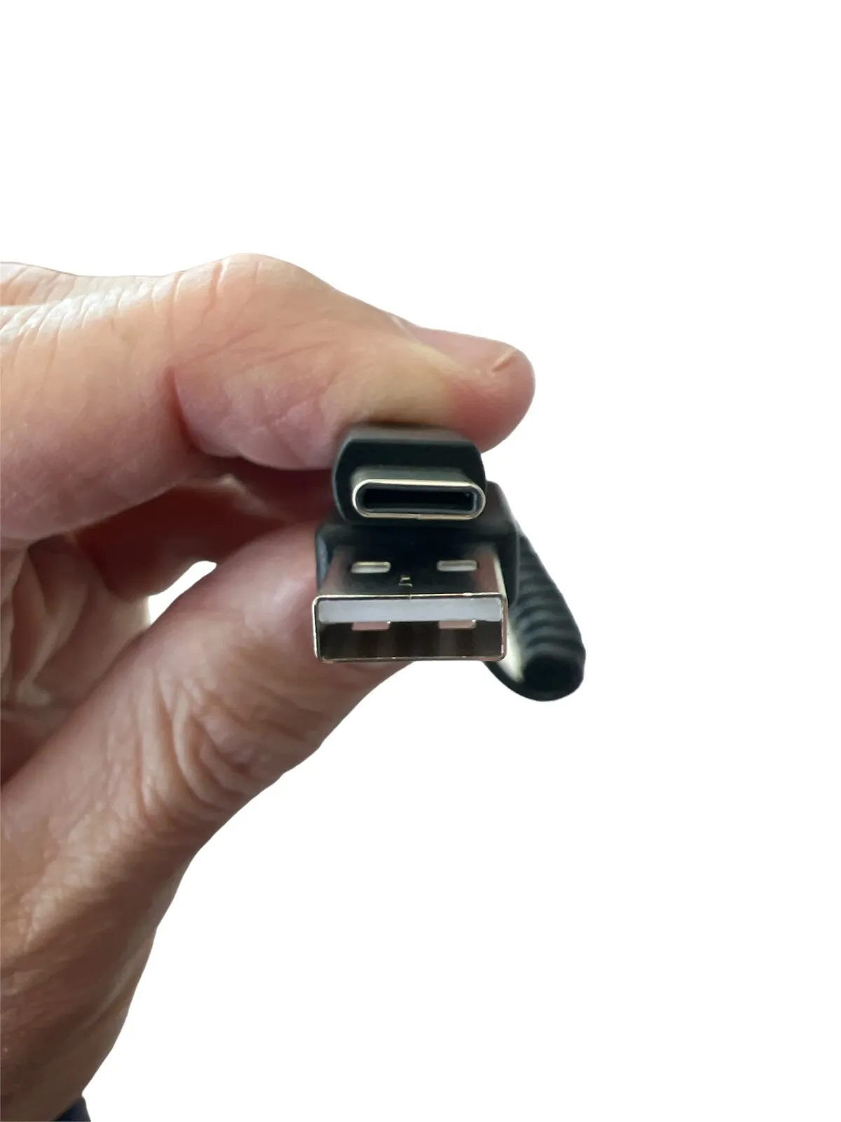 - USB A to USB Type-C Cable, with Coiled Spring Spiral Design, Ideal for charging and powering USB Type-C enabled cameras.