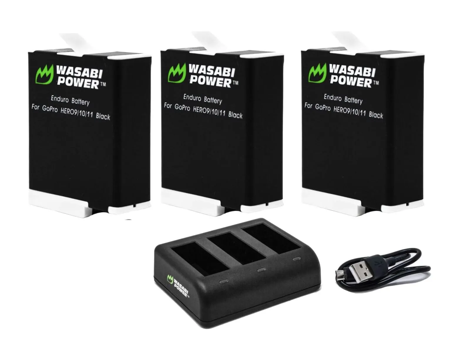 Wasabi Power ALL Weather Batteries (3-Pack and USB Triple Charger) for GoPro HERO12 / GoPro HERO11 Black / GoPro HERO10 / GoPro HERO9 - Replaces ENDURO Batteries