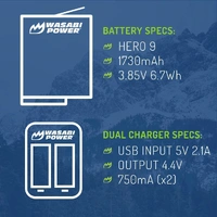 Wasabi Power Batteries (2 Pack and USB Dual Charger) for GoPro HERO9 / GoPro HERO10 - 1730mAh batteries